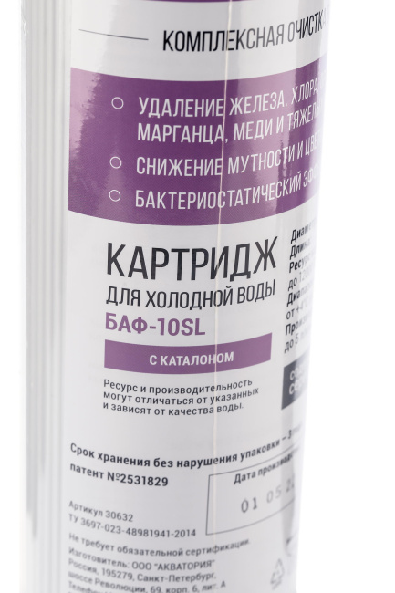 Картридж с мультикомпонентной загрузкой из ионообменных материалов и сорбентов для очистки воды от остаточного хлора, органических соединений, железа (при содержании до 2 мг/л) и других вредных примесей.